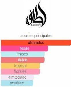 Mayar de Lattafa Perfumes es una fragancia de la familia olfativa Floral Frutal para Mujeres. Las Notas de Salida son lichi, frambuesa y hojas de violeta; las Notas de Corazón son rosa blanca, peonía y jazmín; las Notas de Fondo son almizcle y vainilla.